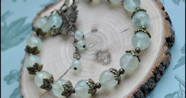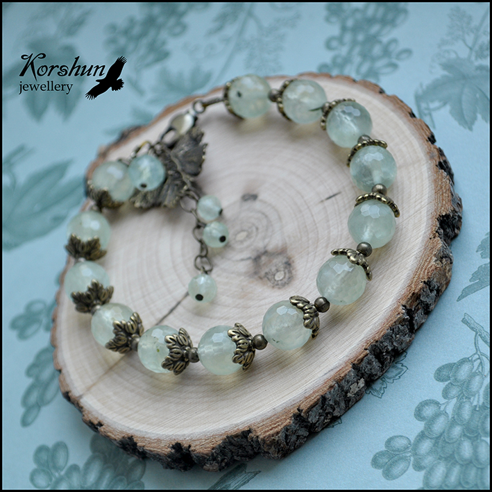 Изящный браслет из пренита и фурнитуры ручной работы. Напоминает редкую гроздь спелого зеленого..