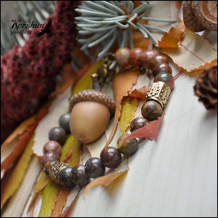 Браслет с авторской фурнитурой ручной работы и яшмой Пикассо. У камня абсолютно осенняя цветовая гам..