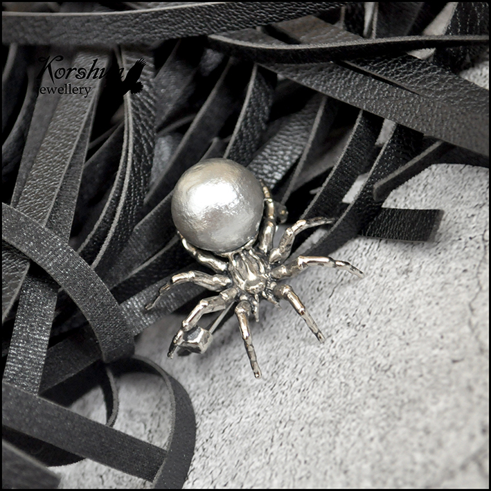Роскошная брошь в виде милого паука с японским хлопковым жемчугом. Привлекает к себе внимание,..