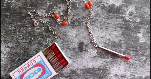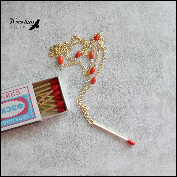 Необычное колье с кораллами и подвеской виде спички может стать пикантной изюминкой в жен..