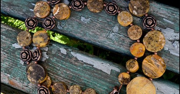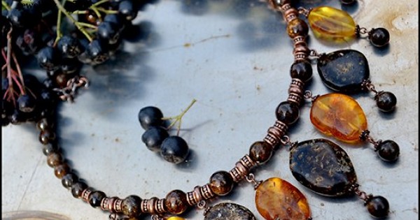 Колье из янтаря и меди. Эта солнечная смола так и притягивает к себе своей силой и энергией времени...