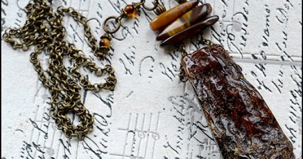 Украшение из полупрозрачного необработанного янтаря. Великолепной красоты камни вобрали в себя всю т..