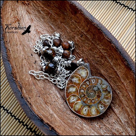 Стильный сотуар с кулоном из половинки древнего окаменелого аммонита. В своей архаичности кулону вто..