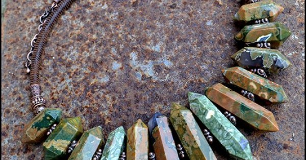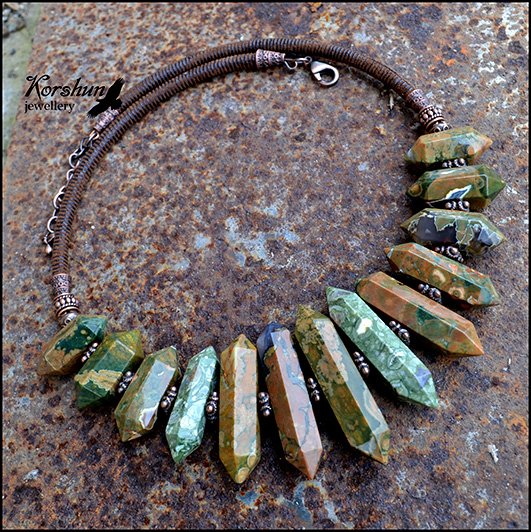 Необычайное колье из океанической яшмы. Осколки напоминают пики скал потерянного в океане загадочног..