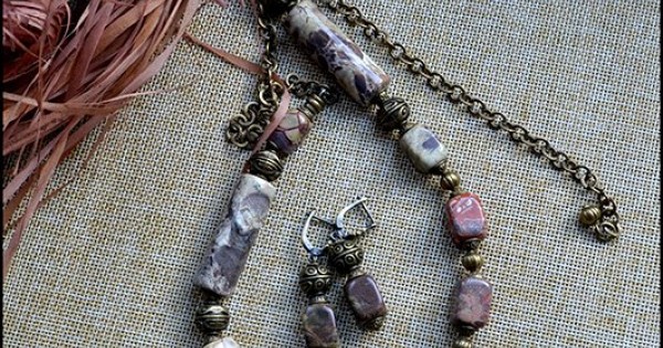 Колье из океанической яшмы. Украшение в спокойных эко цветах. Словно руины старого города затопленны..