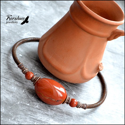 Этническое колье с красной яшмы. В народе этот камень носит название "кровавая яшма",читае..