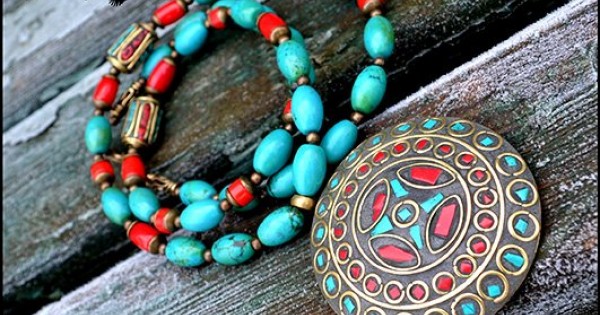 Колье с непальским медальоном и турквенитом. Еще одно украшение с удивительными кулонами ручной..