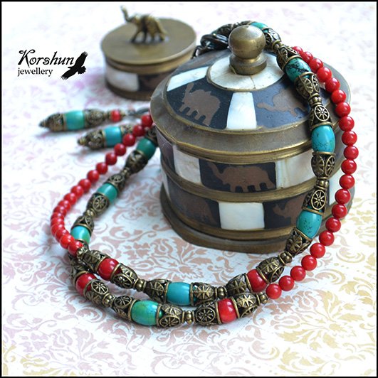 Колоритно колье из камней: коралл и турквенит. В ярком цветовом сочетании чувствуется этника Во..