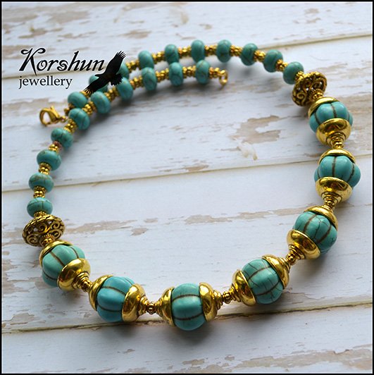 Нарядное колье из турквенита. Украшение получилось насыщенное и яркое, словно лучи звенящего со..
