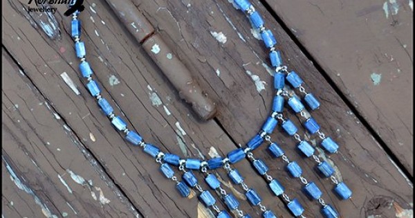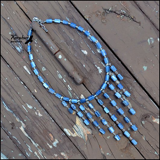 Роскошное каскадное колье из кианита. Кристаллы небесного камня лишь немного подвергли обработке. Бе..