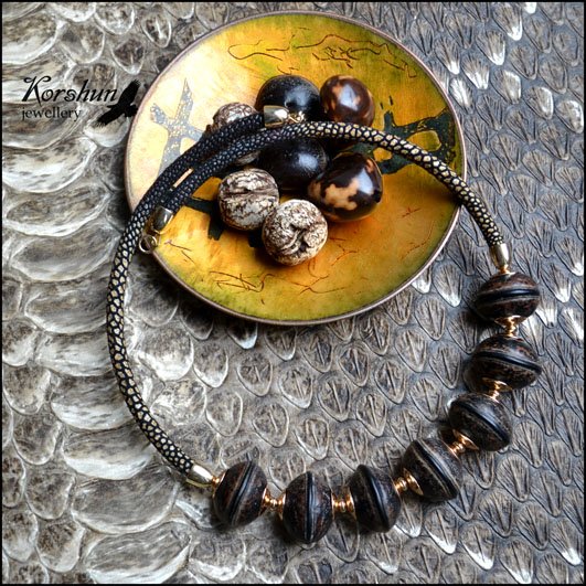 Стильный чокер из экзотических орехов и кожи. В этом украшении соединилось не соединяемое: орехи - э..