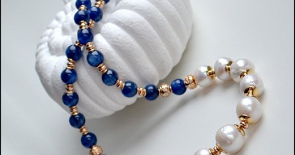 Роскошное колье из японского жемчуга Касуми-Лайки кианита. Синий кианит, словно глубокое с..