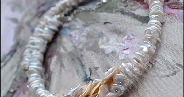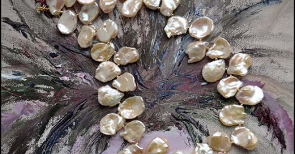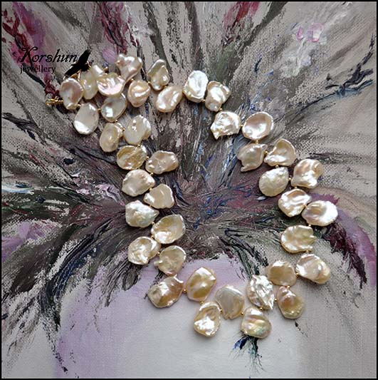 Очаровательное колье из австралийского жемчуга Кеши. Нежные персиковые лепестки, срываемые легким ды..