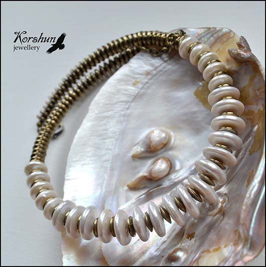 Потрясающее колье из австралийского жемчуга Барокко и гематита. Безумно красивое сочетание мета..
