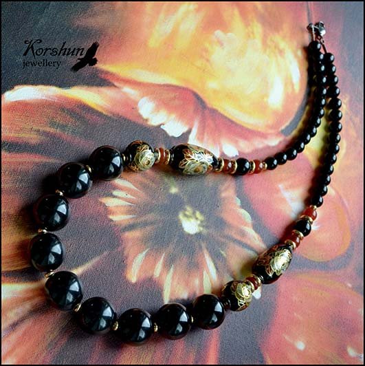 Роскошное колье с сердоликом, агатом и бусиной Тенша. Есть в нем что-то, от спелой ос..