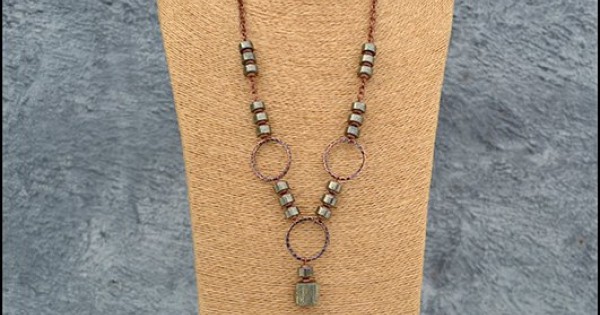 Оригинальное колье из пирита. Давно хотела поработать в смешении двух металлов, но, все в руки не шл..