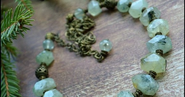 Колье из рубленого пренита. Бусины грубой огранки хорошо передают красоту и самобытность зеленого ка..
