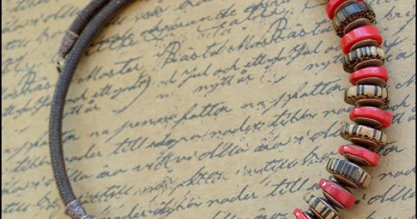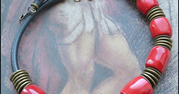 Этническое колье из кораллов и кожи. Украшение дышит первобытностью саванны. Выжженная палящим солнц..