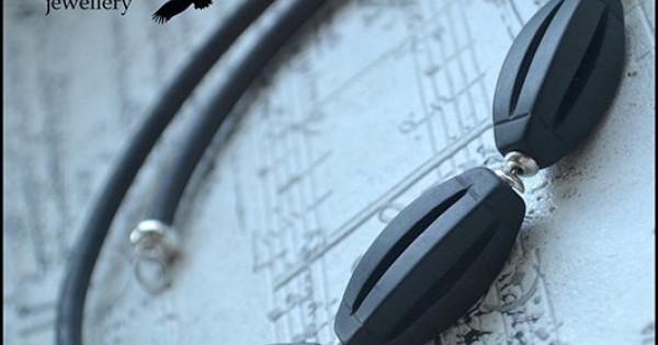 Стильное колье из шунгита и кожи. Резные крупные бусины интересно смотрятся благодаря своей матовост..