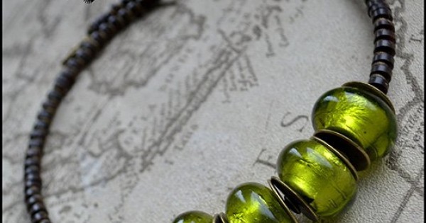 Чокер из кокоса и дизайнерских стеклянных бусин, при создании которых использовалось сусальное ..