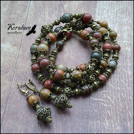 Колье из яшмы Пикассо. Сочная осенняя гамма смешалась в этом удивительном камне, вся красота и преле..