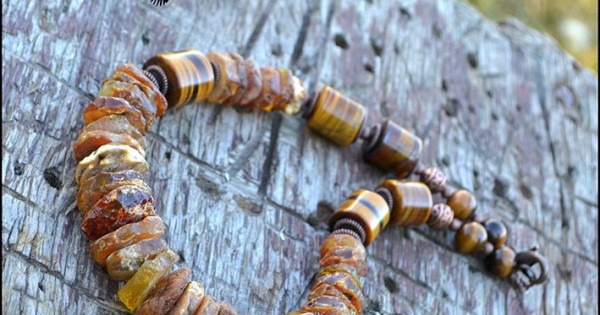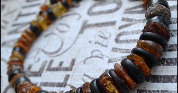 Стильное украшение из дикого балтийского янтаря, кости буйвола и дисков из эбенового дерева. Такой а..