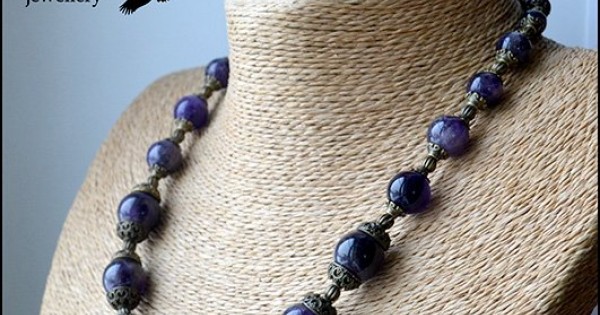 Колье в стиле Винтаж. Красивые медные шапочки хорошо подчеркивают фиолетовый цвет бусины натуральног..