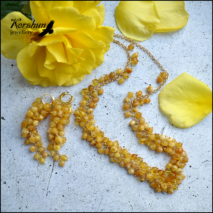 Солнечный комплект из бесподобного балтийского янтаря, бусинки словно медовые кусочки или ..