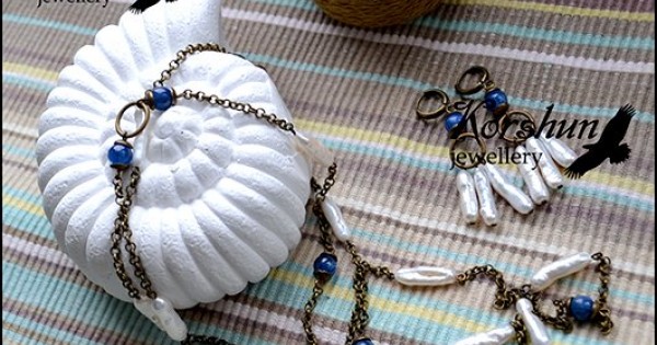 Изящный комплект украшений из кианита и барочного жемчуга. Легкий, почти невесомый, словно игри..