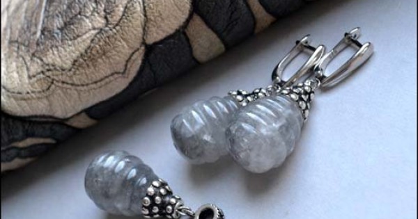 Комплект украшений - серьги и кулон, из великолепного серого кварца Стрелы Амура. Но, в данных ..