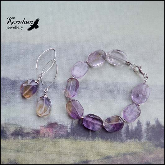 Изящный комплект из аметрина. Нового камня в моей коллекции. Он соединяет в себе аметист и цитрин. Ц..