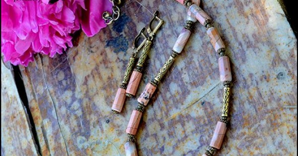 Изящный комплект их австралийской яшмы мукаит. Очаровательная гамма нежных розовых оттенков, словно ..