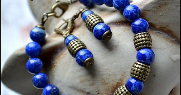 Яркий комплект из великолепного афганского лазурита. Насыщенный цвет камня напоминает пронзительно с..