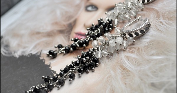 Нарядные, даже можно сказать торжественные, серьги-грозди из ограненных хрусталя и черной шпинели. Ш..