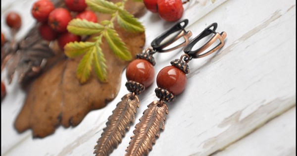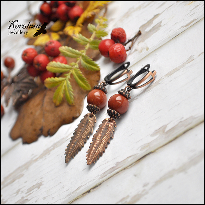 Живописные серьги с редкой перуанской яшмой и авторской фурнитурой ручной работы. Теплый&n..