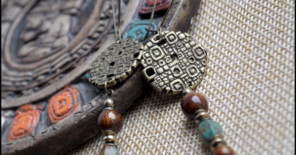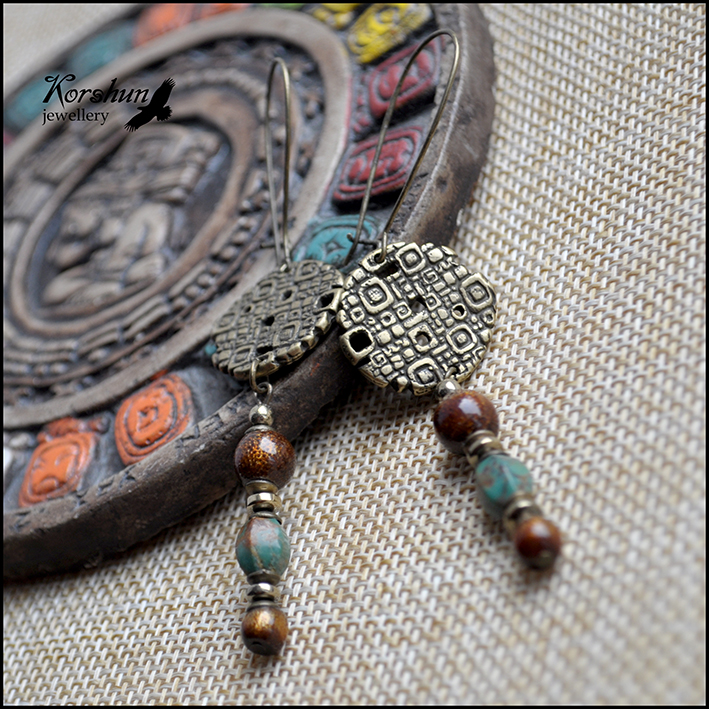 Cерьги в этническом стиле с казахстанской бирюзой, гавайским золотым кораллом и автор..