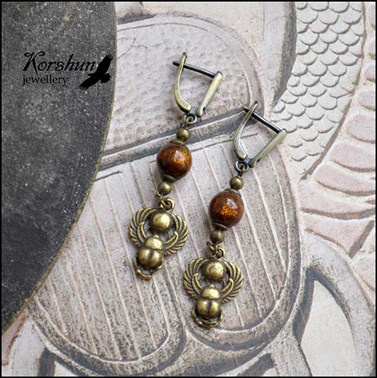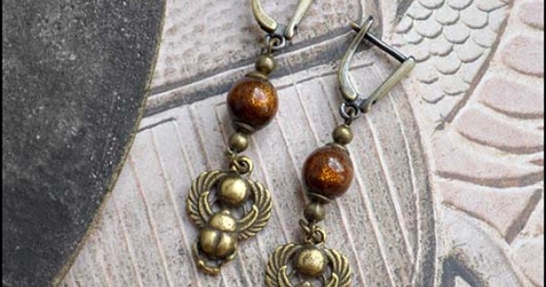 Этнические серьги из золотого гавайского коралла и подвесок ручной работы в виде священных египетски..