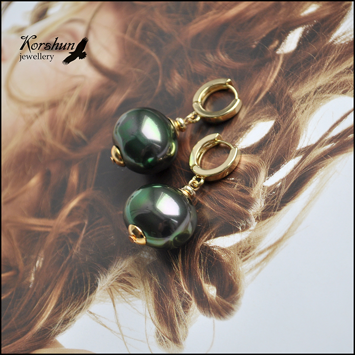 Серьги глубокого изумрудного цвета из жемчуга Майорка. Роскошнее всего этот цвет смотрится в сочетан..