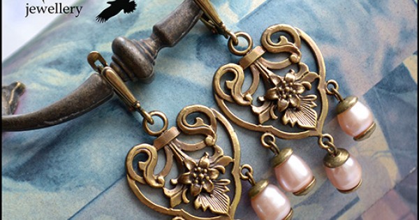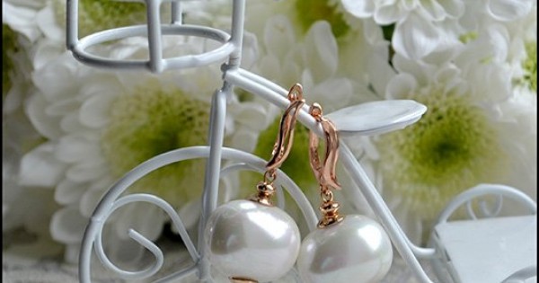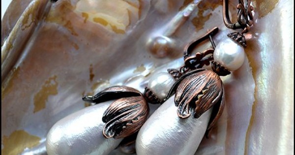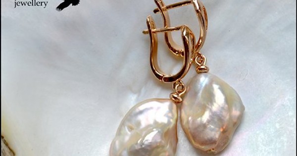 Серьги в стиле барокко с натуральным жемчугом нежно кремового цвета. Основа сережки напоминает ..