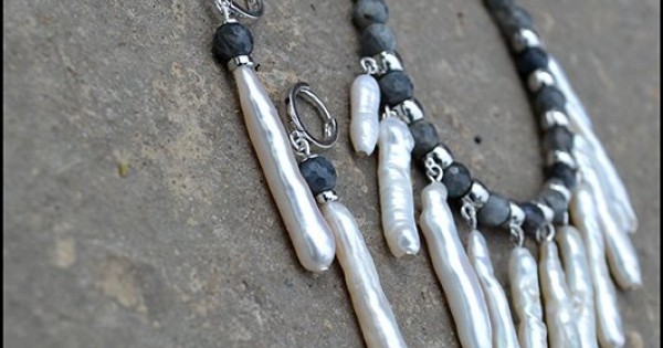 Изысканные серьги из лабрадора и барочного жемчуга. В переливах серого камня отражена вся глуби..