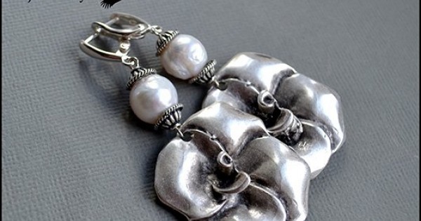 Серьги из серебра 925пр с японским хлопковым жемчугом. Необычная форма, оригинальный материал и ..