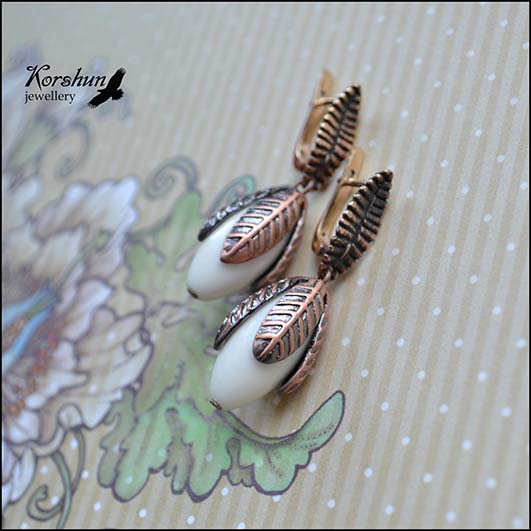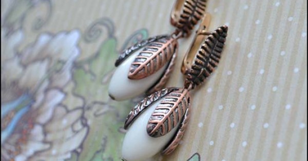 Очаровательные серьги из кости в медной авторской фурнитуре ручной работы. Некрупное нежное украшени..