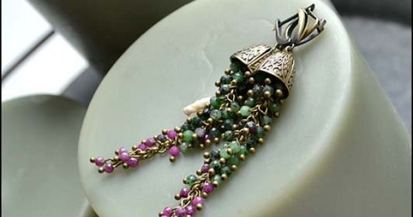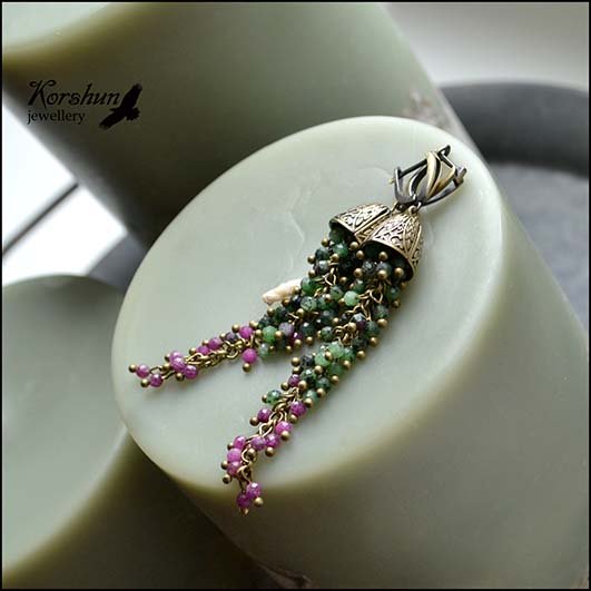 Интересные серьги-грозди из цоизита "Аниолита", который содержит в себе включения руб..