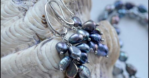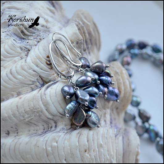 Стильные серьги из изумительного сизого жемчуга. Словно небольшие виноградные грозди покрытые седым ..