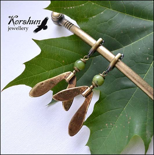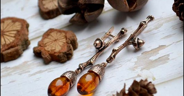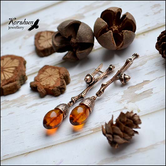 Удивительные серьги с натуральным янтарем. Медная фурнитура ручной работы изысканна и тонка. Детализ..