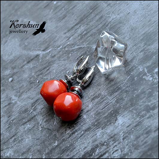 Яркие серьги из натуральных кораллов окрашенных шафраном в сочный оранжевый цвет, что дела..