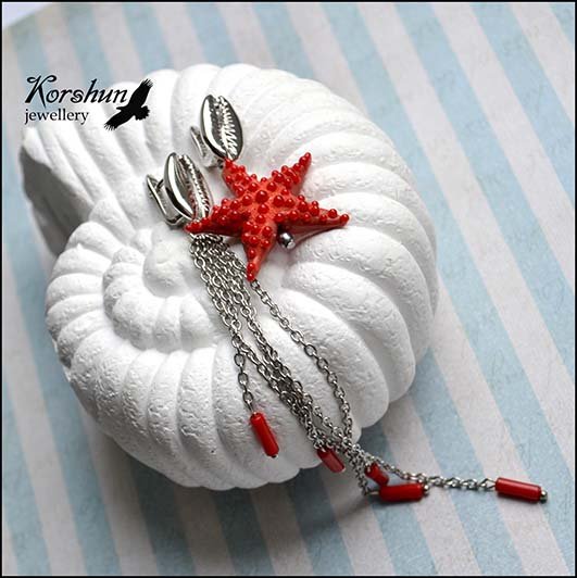 Фантазийные серьги с голубым кораллом Акори. Экзотические жители подводного мира. В компле..