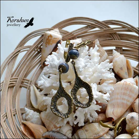 Серьги в восточном стиле из серебра 925 пр. и кианита. Названы гавайским именем, что обозн..