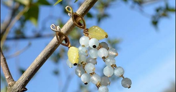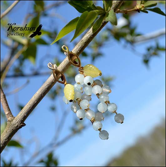 Очаровательные серьги-грозди из натурального аквамарина и жадеита. Словно некрупные кисти роскошной ..
