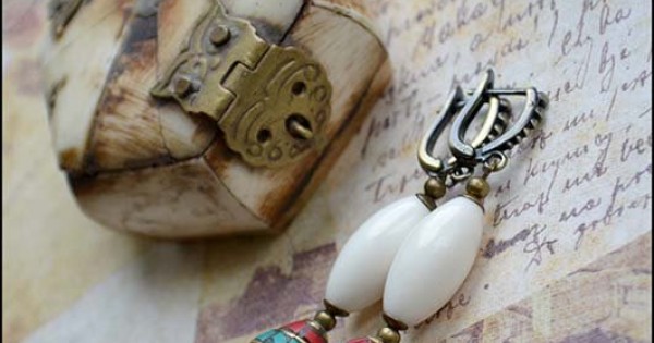 Серьги в этническом стиле с бусинами из кости и непальскими бусинами ручной работы. Лето - самое вре..